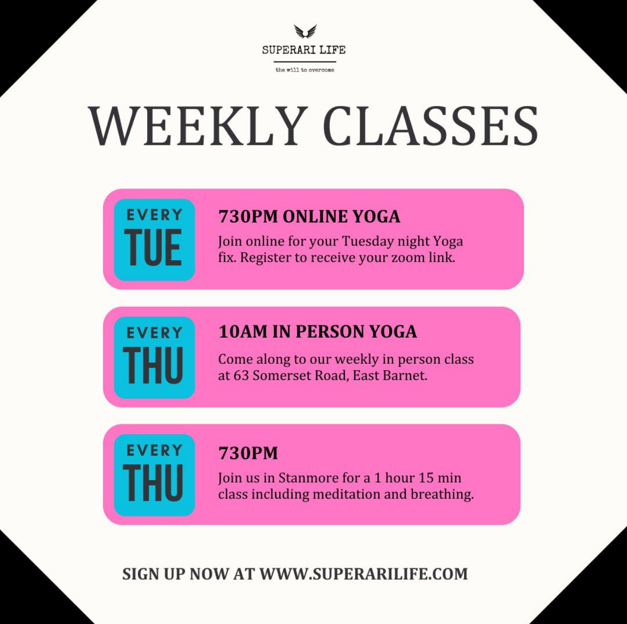 We have four options after your first free class. A 10 session online pass [£119, valid for 12 weeks], an in person and online pass [£149, valid for 12 weeks], an Unlimited Pass [£199 valid for 10 weeks for both online and in person sessions] or drop in passes are also available [£20]. Your first trial class is free of charge.